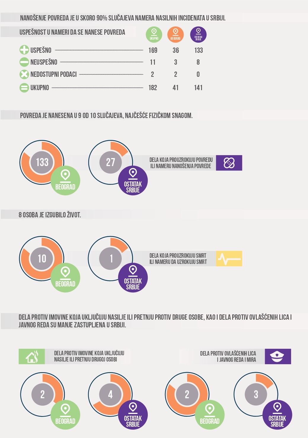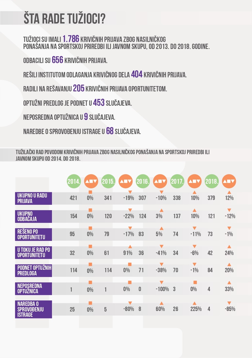 Istraživački tim BCBP u infografiku predstavlja analizu nasilnih incidenata u vezi sa sportom koji su se dogodili u periodu važenja Nacionalne strategije za borbu protiv nasilja i nedoličnog ponašanja na sportskim priredbama.