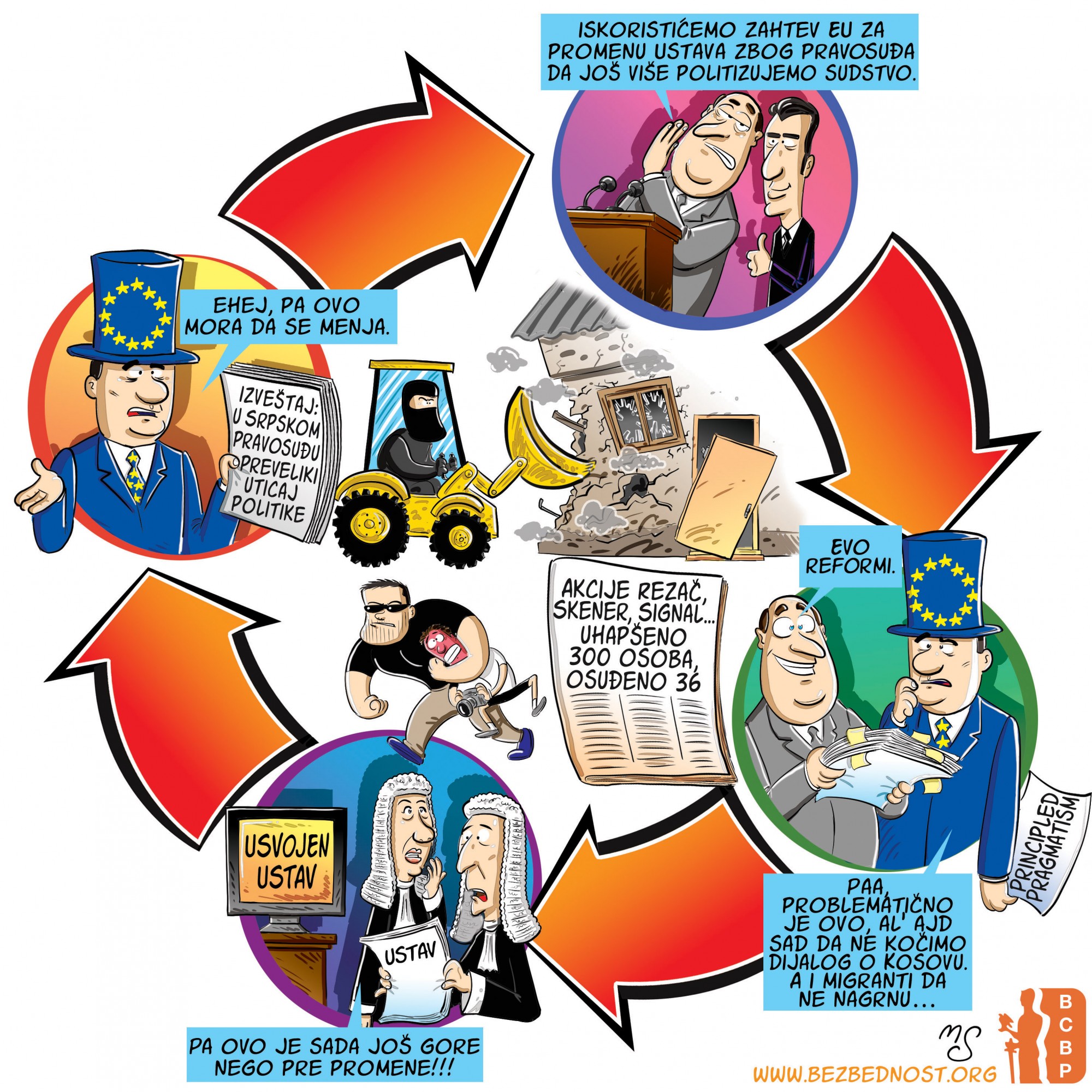 BCBP stripom skreće pažnju na izazove koji su pred srpskim društvom u procesu reforme Ustava na putu ka članstvu u Evropskoj uniji. Glavna poruka stripa je da glas struke treba na vreme slušati kako ustavna reforma ne bi zapala u začarani krug političkih interesa.