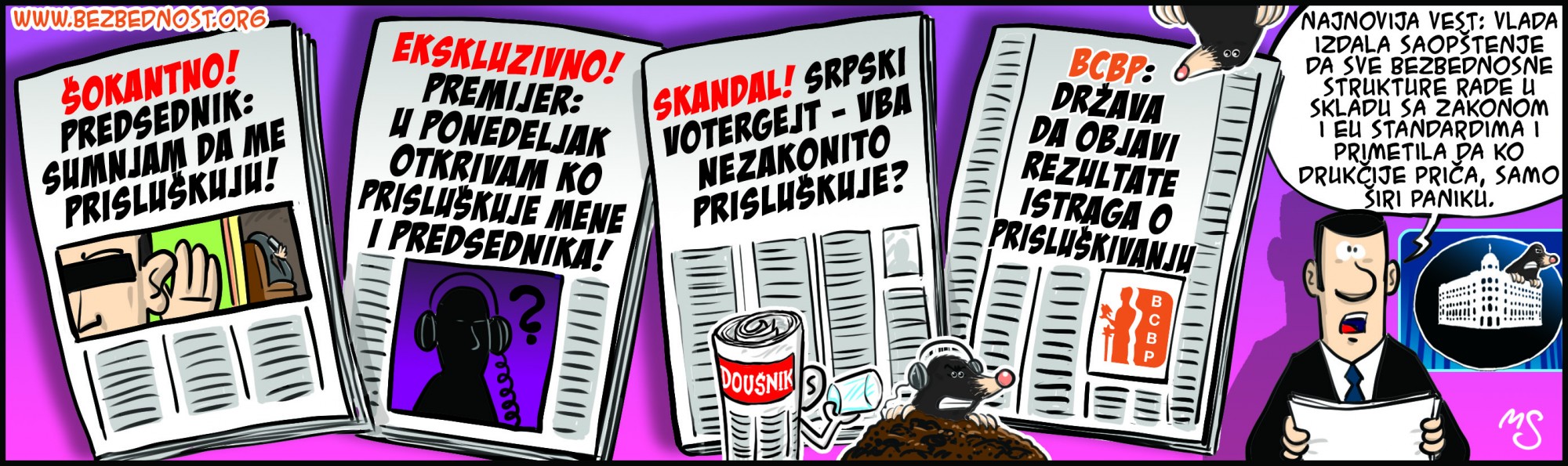 BCBP stripom skreće pažnju na problem curenja informacija do kojih policija i obaveštajne službe dolaze upotrebom specijalnih istražnih mera. Učestalost ovih pojava u Srbiji ukazuje na veliku politizaciju institucija sektora bezbednosti i loše upravljanje ljudskim resursima, kao i slabu unutrašnju ali i spoljašnju kontrolu.
