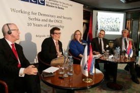 Povodom desetogodišnjice rada Misije OEBS u Srbiji u hotelu „Continental“ 16. maja održan je panel posvećen napretku u reformi policije u Srbiji. O najistaknutijim rezultatima u radu policije, ali i o ključnim preprekama govorili su Dražen Maravić, šef Biroa za strateško planiranje Ministarstva unutrašnjih poslova, Vlajko Senić, član Odbora za odbranu i bezbednost, i Ivan Marović, bivši član organizacije Otpor. Skupom je moderirala Sonja Stojanović, direktorka Beogradskog centra za ...